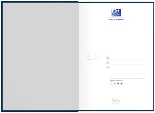 • Pagina voorin bevat tekstvelden om uw notebook te voorzien van uw naam en contactgegevens.