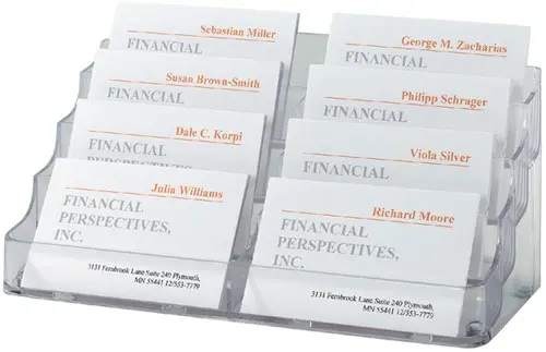 • Of het nu op de beurs, in een showroom of op de adviesbalie is - in deze houder voor visitekaartjes presenteert u uw visitekaartjes opvallend en goed gesorteerd.