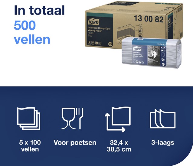 Reinigingsdoek Tork W4 Premium Industrial Heavy-Duty gevouwen 3-laags 5x100 vel blauw 130082