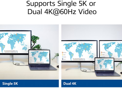 • Maximale videoresolutie: 1x 5K @ 60Hz of 2x 4K @ 60Hz.
