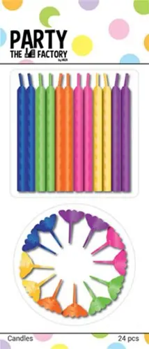 • Deze taartkaarsjes bestaan uit 24 stuks. Daarnaast zitten er houdertjes voor de kaarsen bij.