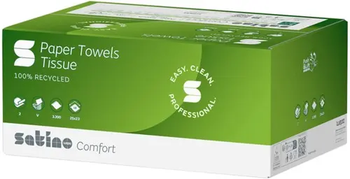• Papieren v-vouw handdoeken van Satino Smart zijn gemaakt van 100% gerecycled papier