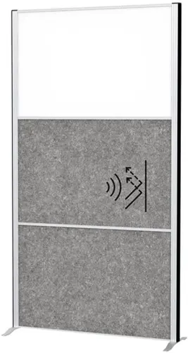 Scheidingswand MAUL akoestiek 100x180 2xdonker- 1xwhiteboard alum.frame op voet