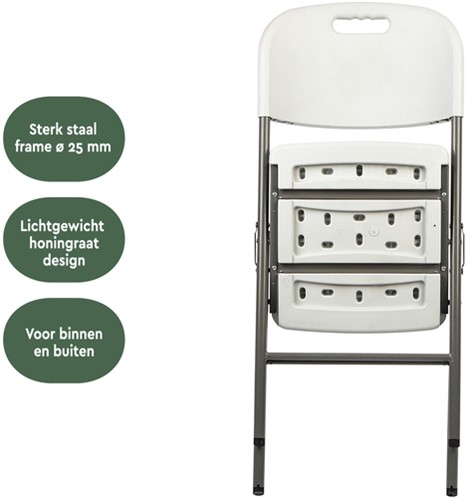• Iets te vieren, te presenteren of een extra zitplaats creëren? Zet makkelijk en snel de stevige BRASQ Klapstoel bij. Met een strak design past hij in elk interieur en hij is supersnel opengeklapt voor gebruik. Heb je een evenement, wil je je patiënten comfortabel in de wachtkamer plaats laten nemen of geef je een training? Schuif aan, zet bij! De BRASQ Klapstoel zet je ook weer gemakkelijk weg in de keukenkast, garage of je opberghok. Met zijn lichtgewicht frame weeg de klapstoel in zijn geheel slechts 3,2kg waardoor je deze makkelijk op kunt pakken en weg kunt bergen. Deze stoelen hebben een slim design en passen perfect in elkaar waardoor je ze makkelijk op een rij kunt zetten en ze minimale bergruimte innemen. Met een zithoogte van 44 cm en een zacht zitcomfort biedt deze klapstoel optimaal zitgemak. De stoelpoten zijn gemaakt van stevig metaal met een zwarte poedercoating en zijn afgewerkt met kunststof doppen die krassen op de vloer voorkomen.