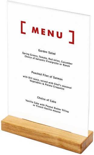 • Breng jouw menu’s, aanbiedingen of aankondigingen optimaal onder de aandacht met de IEZZY menukaarthouder T tafeldisplay A4. Deze elegante standaard combineert een kristalheldere plastic houder met een stevige eikenhouten voet, wat zorgt voor een hoogwaardige en natuurlijke uitstraling op elke tafel of balie. Dankzij de handige zijdelingse opening wissel je documenten in een handomdraai, perfect voor drukke horecaomgevingen of ontvangstruimtes. Het royale A4-formaat biedt maximale zichtbaarheid en is ideaal voor het presenteren van uitgebreide informatie. Deze menukaarthouder staat garant voor duurzaamheid, stijl en praktisch gebruiksgemak in één. Kenmerken: