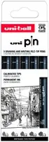 Fineliner Uni-ball Pin ASP009 set à 5 breedtes zwart