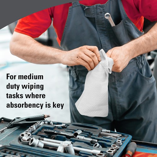 • De mate van absorptie die we bieden, is toonaangevend. Ons doel is u te ondersteunen bij het verbeteren van de productiviteit en efficiëntie en tegelijkertijd afval te verminderen door schone, betrouwbare doeken te leveren die kunnen worden hergebruikt. Deze kwartgevouwen, waterabsorberende poetsdoeken worden geleverd in een beschermende plastic zak voor doek-voor-doek afgifte die helpt het gebruik onder controle te houden, de hygiëne te verbeteren en afval te verminderen.