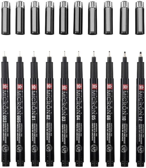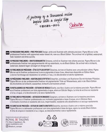 Fineliner Sakura Pigma Micron Black Edition set à 10 breedtes + gratis etui