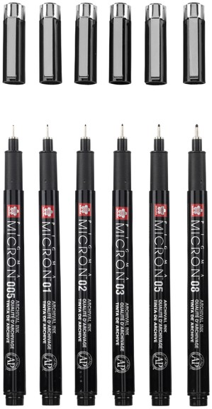 Fineliner Sakura Pigma Micron Black Edition set à 6 breedtes + gratis etui