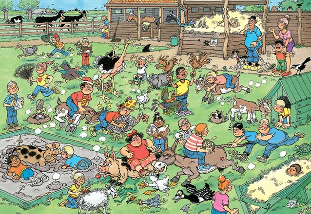Hou jij ook zo van dieren? Dan is deze Jumbo Jan van Haasteren Junior puzzel De Kinderboerderij een echte aanrader voor jou. Op de boerderij valt er altijd wel wat te beleven, zo zijn er varkens, een ezel en geiten in de kinderboerderij? Jan van Haasteren Junior laat kinderen vanaf 5 jaar kennismaken met de absurde wereld van deze beroemde puzzels. Ze zetten hun eerste stappen in de humoristische illustraties van Jan van Haasteren en maken vorderingen met verschillende aantallen en moeilijkheidsgraden. Perfecte activiteit: puzzelen is de ideale activiteit voor schermvrije tijd, het stimuleert de concentratie en is ontspannend. Milieuvriendelijk: alle Jan van Haasteren puzzels zijn gemaakt van 100% gerecycled karton en duurzaam geproduceerd papier.
