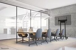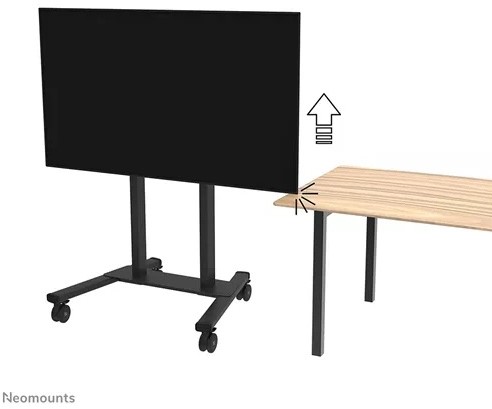 De Neomounts FL55-875BL1 MOVE Lift is een mobiele vloersteun voor displays tot 100" met een maximaal