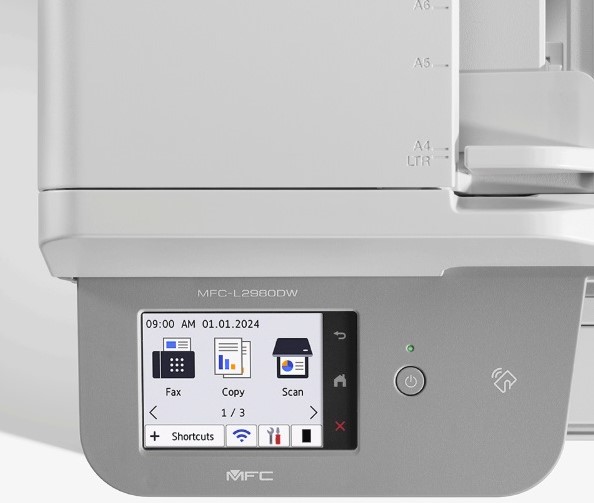 De MFC-L2980DW is een professionele, draadloze all-in-one zwart-witlaserprinter die vanwege het compacte formaat en lage geluidsniveau zeer geschikt is voor ondernemers en kleine bedrijven. Deze ruimtebesparende printer combineert diverse professionele functies in één compact uitgevoerd apparaat, waaronder automatisch dubbelzijdig printen, scannen en kopiëren. Daarnaast beschikt de printer over een grote papierlade, NFC en een automatische documentinvoer (ADF) voor het snel en gemakkelijk kopiëren en scannen van documenten van meerdere pagina's. Via de Brother Mobile connect app kunnen gebruikers vanaf elke locatie printen en scannen, direct vanaf hun smartphone of tablet.