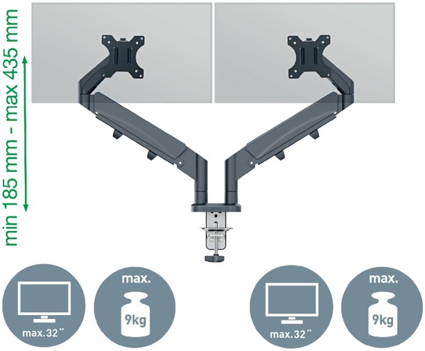 Monitorarm Leitz Ergo ruimtebesparend dubbel donkergrijs