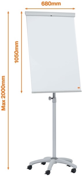 • Magnetisch schrijfbordoppervlak (68 x 105 cm) inclusief pennenbakje. Snelsysteem voor het verwisselen van flipoverblokken, geschikt voor alle gangbare flipoverblokken. Zwenkwielen van kunststof (Ø 60 cm) met 5 vergrendelbare wielen, traploze hoogteverstelling van 180 tot 200 cm totale hoogte.