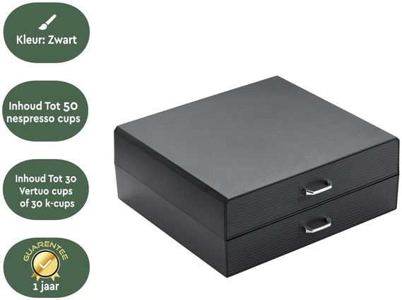 • Geschikt voor: 50 cups Nespresso of 30 K-cup of Vertuo cups
