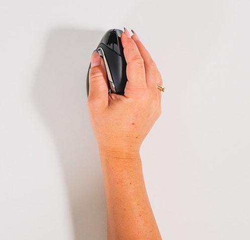 - De Evoluent4 Right Bluetooth wordt vastgehouden in een handdrukpositie, wat betekent dat jouw hand rechtop in een neutrale houding ligt.