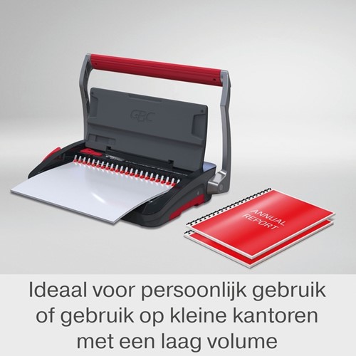 • Bindt maximaal 195 vellen (80 grams) tegelijk met een inbindrug van 19mm.
