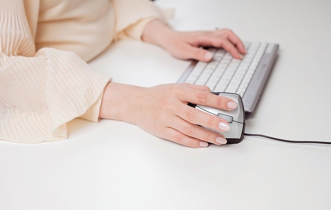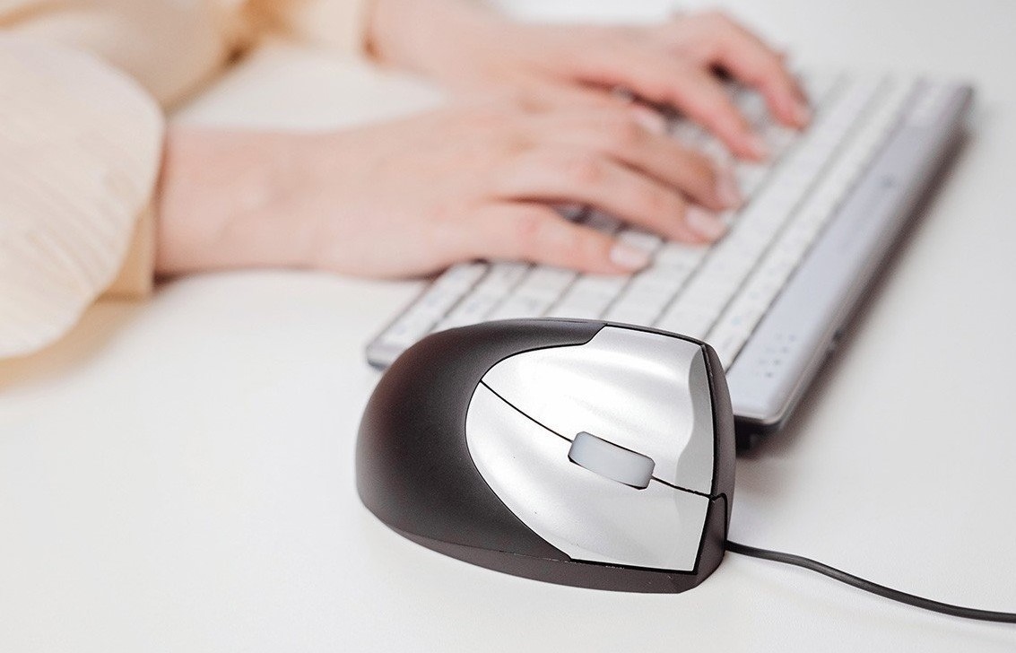 Zoals de naam al doet vermoeden, wordt de Handshake verticale muis vastgepakt in een natuurlijke handschudhouding met een comfortabele hellingshoek van 90°. De pols buigt niet te veel zijwaarts, en de onderarm hoeft minder naar binnen te draaien. Dit verbetert de houding van de pols en voorkomt lichamelijk ongemak. De ergonomische handdrukpositie vermindert ook de spieractiviteit in de onderarm in vergelijking met een standaard computermuis. Met de Handshake verticale muis werk je ergonomisch en gezond voor meer productiviteit op het werk.