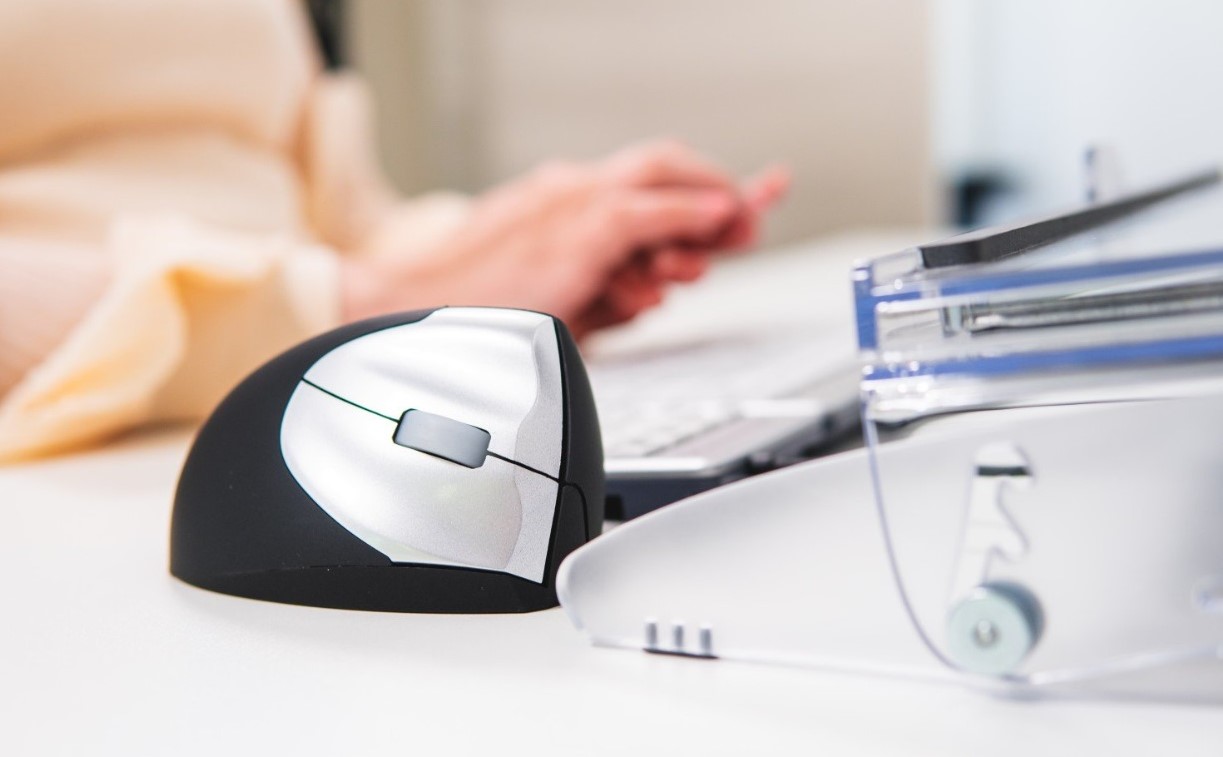 Zoals de naam al doet vermoeden, wordt de Handshake verticale muis vastgepakt in een natuurlijke handschudhouding met een comfortabele hellingshoek van 90°. De pols buigt niet te veel zijwaarts, en de onderarm hoeft minder naar binnen te draaien. Dit verbetert de houding van de pols en voorkomt lichamelijk ongemak. De ergonomische handdrukpositie vermindert ook de spieractiviteit in de onderarm in vergelijking met een standaard computermuis. Met de Handshake verticale muis werk je ergonomisch en gezond voor meer productiviteit op het werk.