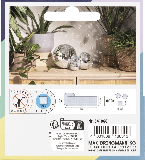 • Geef je projecten een luxe en sprankelend effect met onze zelfklevende spiegeltegel rollen. De tegels van 5 x 5 mm zijn gemaakt van hoogwaardig glas en zorgen voor een prachtige reflectie.