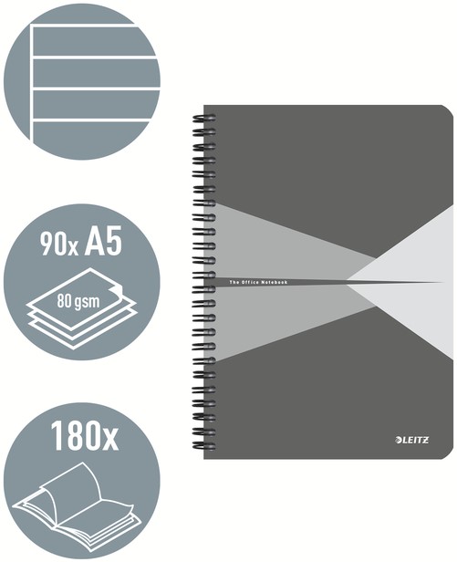 Notitieboek Leitz Office A5 lijn grijs grijs