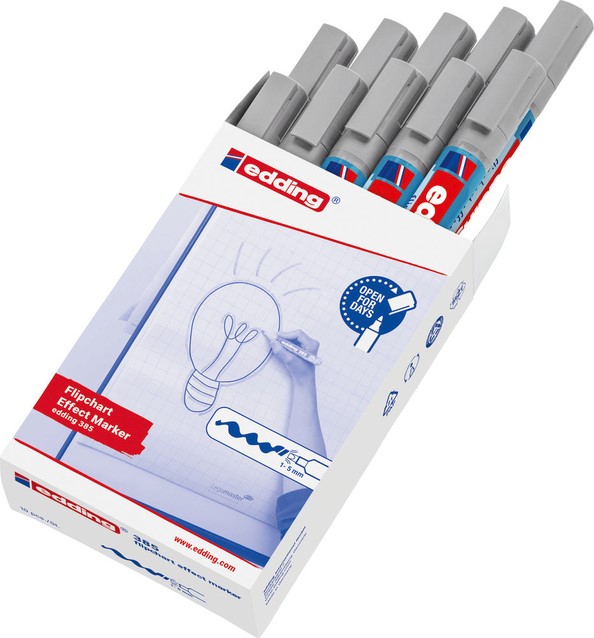 • De edding 385 flipchart effect marker is ontworpen voor indrukwekkende visuele presentaties, geschikt voor professionele vergaderingen, klaslokalen en creatieve workshops.