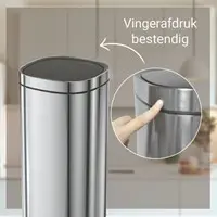• Dutch Design touch afvalemmer met strakke lijnen, fijne ronde hoeken en een stevig onderstel. Gemaakt van hoogwaardig roestvrij staal 410 en uitgerust met een mute open/close system welke je met één druk kunt openen en sluiten. De deksel veert langzaam terug zonder geluid.