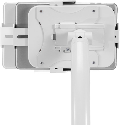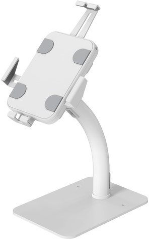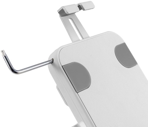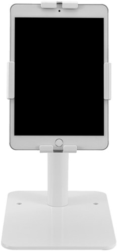 • De Neomounts DS15-625WH1 is een tafelblad tablethouder die 360° kan roteren, zodat eenvoudig geschakeld kan worden tussen portrait en landscape oriëntatie. Daarnaast kan de tablethouder +20°/-110° kantelen voor een comfortabele kijkpositie. Met behulp van de schuifrail aan de achterzijde kan de tablet in het midden van de steun worden uitgelijnd. De tablethouder is voorzien van een anti-diefstalslot en een schroefbare basis voor extra veiligheid. Anti-slipkussentjes beschermen de tablet tegen eventuele krassen, terwijl de in hoogte en breedte verstelbare klemmen zorgen voor een veilige en solide plaatsing van het apparaat. De bovenzijde is voorzien van een uitsparing voor de camera van de tablet. Kabels kunnen netjes worden weggewerkt via het interne kabelmanagementsysteem. De DS15-625WH1 is geschikt voor tablets met een dikte van 0-8,5 mm.