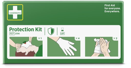 • Cederroth Protectiepakket is een hulpmiddel om op de juiste wijze mond-op-mondbeademing te geven en tegelijkertijd het risico op contact tussen de hulpverlener en de verwonde te verkleinen. Cederroths beademingsmasker is voorzien van een terugslagklep. Op de beschermdoek staan duidelijke instructies in kleur.