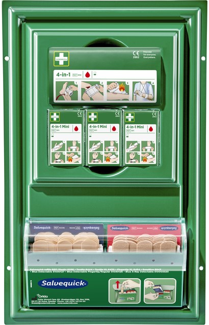• Inhoud: 1 Cederroth 4-in-1 bloedstelpend verband 3 Cederroth 4-in-1 mini bloedstelpende verbanden 1 st. Salvequick Pleisterautomaat