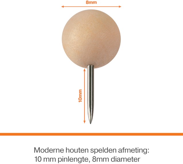 • Afmeting: lengte van de pin is 10 mm en 8 mm diameter houten punaisekop.