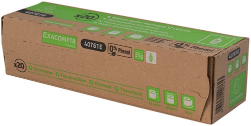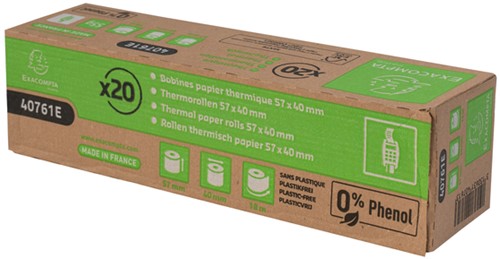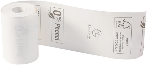 • 1 laag thermisch papier 55g/m2 fenol- en plasticvrij.