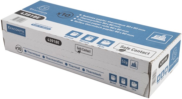 • 1 laag thermisch papier 52g/m2 - Safe Contact.