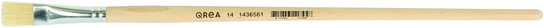 • Kwast Qrea varkenshaar nr. 14 – 13,4mmOntdek de veelzijdigheid van de Qrea varkensharen kwast nr. 14, een must-have voor elke kunstenaar en klusser. Met zijn platte vorm, stevige varkensharen en een bus van hoogwaardig plaatmetaal biedt deze kwast uitstekende controle en duurzaamheid. Het ruwe handvat van blank hout ligt stevig in de hand, ook bij langdurig gebruik. Ideaal voor het aanbrengen van verf, primers, vernissen, lijm en zelfs voor technieken zoals impasto – deze kwast is inzetbaar bij talloze toepassingen en maakt elk project netter en professioneel.Kenmerken: