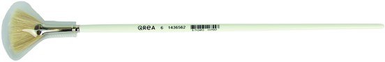 • Waaierpenseel Qrea varkenshaar nr. 6 – Ø 45mm De waaiervormige penseel van Qrea is een effectief instrument voor kunstenaars die werken met olie- of acrylverf. Dankzij de natuurlijke varkensharen biedt dit penseel een onzichtbare verfopname en uitstekende spreiding, ideaal voor het creëren van fijne structuren en zachte overgangen. De lange, witte houten steel ligt comfortabel in de hand en zorgt voor nauwkeurige controle tijdens het schilderen. Door de hoge elasticiteit en vormvastheid is de penseel kwaliteit, zelfs bij intensief gebruik. Kenmerken: