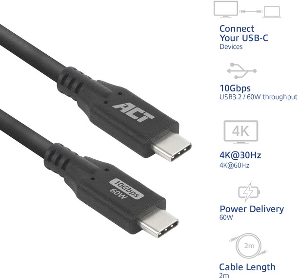 Kabel ACT USB-C 3.2 GEN.2 M/M zwart 2 meter