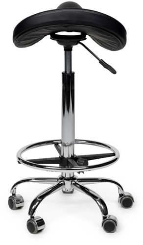 Zadelkruk Office Premium hoog met voetring harde wielen zw