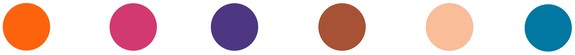 • Kleuren: oranje, cyclaam, violet, turquoise, bruin en perzik.