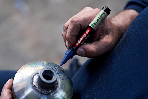 • Lakmarker van professionele kwaliteit voor zeer ondoorzichtige en permanente markering en labeling op donkere, transparante en gladde materialen, bijv. glas, metaal en kunststof. Milieuvriendelijke verf op waterbasis met een laag VOS-gehalte. Voor gebruik: Schud de marker met de dop erop. Verwijder de dop. Pomp de marker met de punt omlaag op bijv. een stuk afvalpapier. Pomp deze voorzichtig op en neer tot de punt met inkt is gevuld. De marker is nu gereed voor gebruik. Horizontaal bewaren.Eigenschappen: