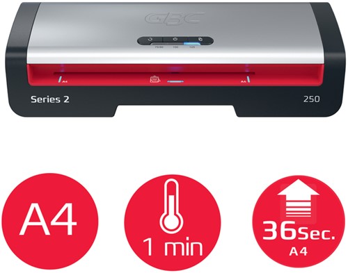 • Lamineert een A4 document (75 mic) in slechts 36 seconden. Lamineert 16x A4 in 10 minuten.