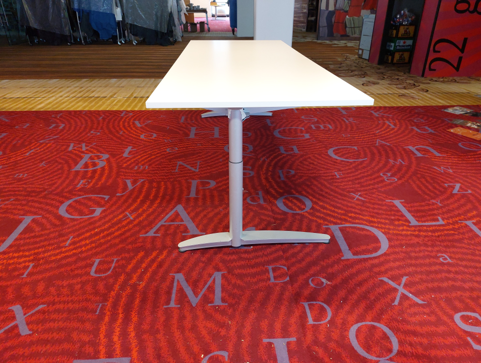 Bureau 240x90cm hoogte instelbaar, frame alu-kleur, blad wit - gebruikt