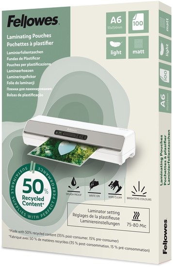 Lamineerhoes Fellowes A6 light 50% gerecycled mat 100stuks