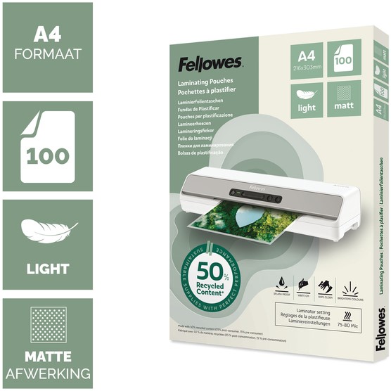 Lamineerhoes Fellowes A4 light 50% gerecycled mat 100stuks