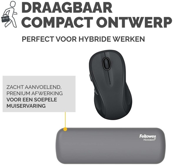 De HEX Cushion Technology™, waarvoor patent is aangevraagd, zorgt voor gelijkmatige ondersteuning en comfort tijdens het gebruiken van de muis. De zachte, stofwerende polssteun heeft een mooie afwerking en zorgt voor een soepele muiservaring. De ingebouwde Microban®-bescherming helpt de groei van bacteriën tegen te gaan en werkt 24/7 voor extra bescherming van het product. Draagbaar, lichtgewicht en compact ontwerp, ideaal voor hybride werken. 100% recyclebaar met het terugnameprogramma van Fellowes. Gemaakt om lang mee te gaan met 5 jaar beperkte garantie. Getest door FIRA International Ltd om te voldoen aan de ergonomische eisen van de Europese gezondheids- en veiligheidswetgeving: EN ISO 9241-5.