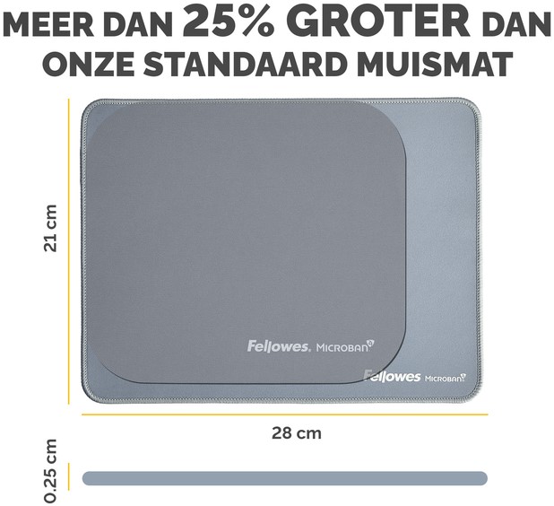 • Meer dan 25% groter dan onze standaard muismatten voor meer bewegingsvrijheid, waardoor kleine herhaalde bewegingen die pijn in de pols kunnen veroorzaken, worden verminderd.