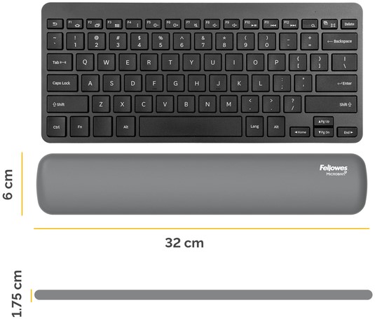 De HEX Cushion Technology™, waarvoor patent is aangevraagd, zorgt voor gelijkmatige ondersteuning en comfort tijdens het typen. De zachte, stofwerende polssteun heeft een mooie afwerking en zorgt voor een soepele typervaring. De ingebouwde Microban®-bescherming helpt bacteriën tegen te gaan en werkt 24/7 voor extra bescherming van het product. Gemaakt voor compacte (TKL) toetsenborden. 100% recyclebaar via het terugnameprogramma van Fellowes. Gemaakt om lang mee te gaan met 5 jaar beperkte garantie. Getest door FIRA International Ltd om te voldoen aan de ergonomische eisen van de Europese gezondheids- en veiligheidswetgeving: EN ISO 9241-5.