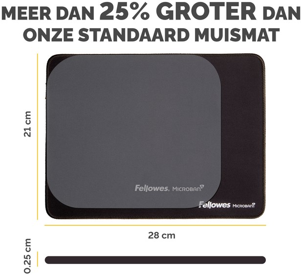 • Meer dan 25% groter dan onze standaard muismatten voor meer bewegingsvrijheid, waardoor kleine herhaalde bewegingen die pijn in de pols kunnen veroorzaken, worden verminderd.