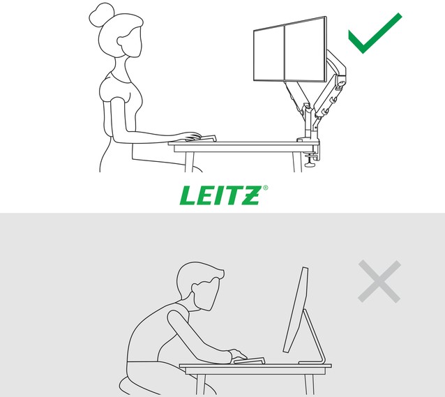 Monitorarm Leitz Ergo ruimtebesparend dubbel grijs