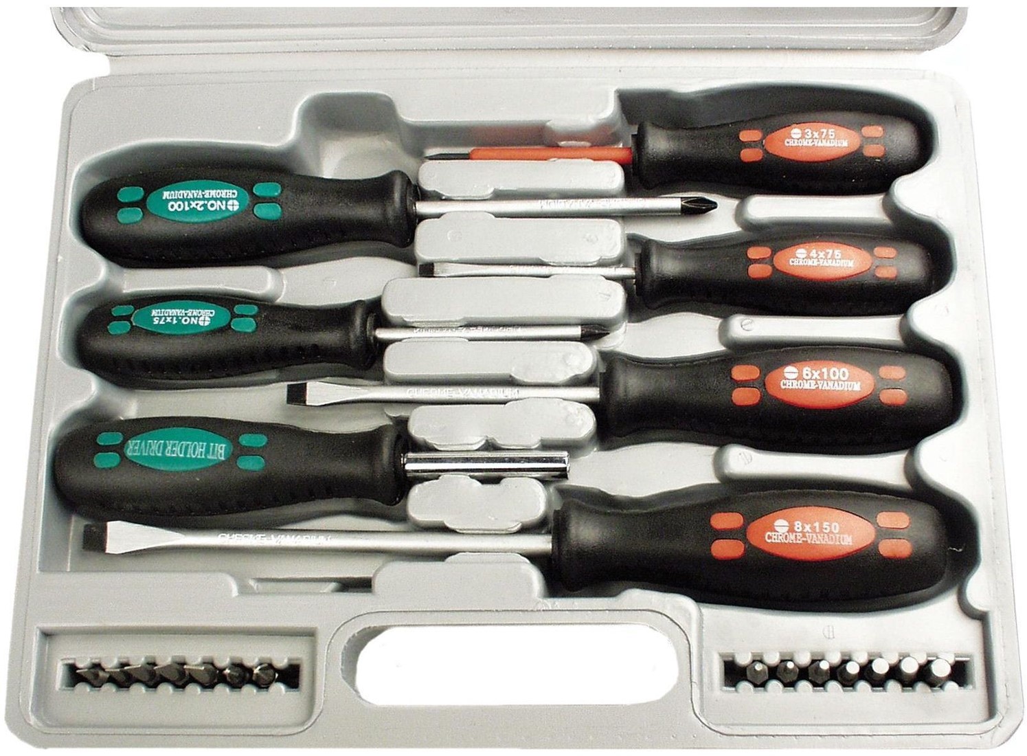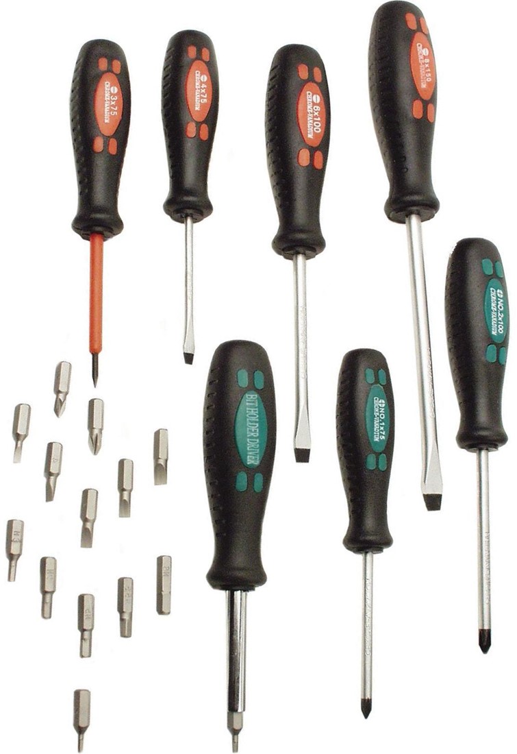 Dankzij de combinatie van vaste schroevendraaiers, een bitschroevendraaier en een uitgebreid assortiment bits is deze set geschikt voor uiteenlopende schroefklussen.