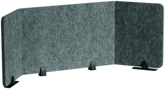 • Plooibaar bureauscherm voor effectieve privacy en akoestische bescherming op de werkplek, gemaakt van gerecycled PET-vilt.